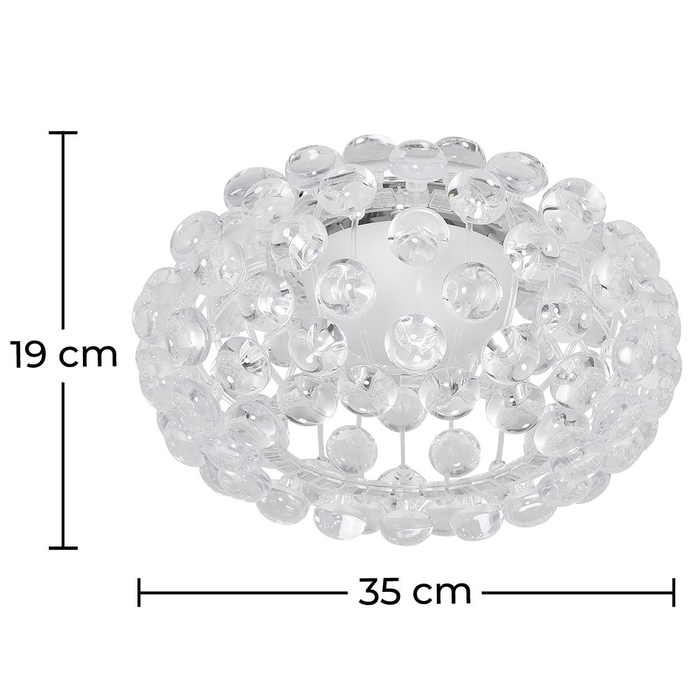 This ceiling lamp has a diameter of 35cm and thanks to its pieces made of acrylic the light emitted by the bulb will reflect throughout the room creating a warm and welcoming atmosphere.