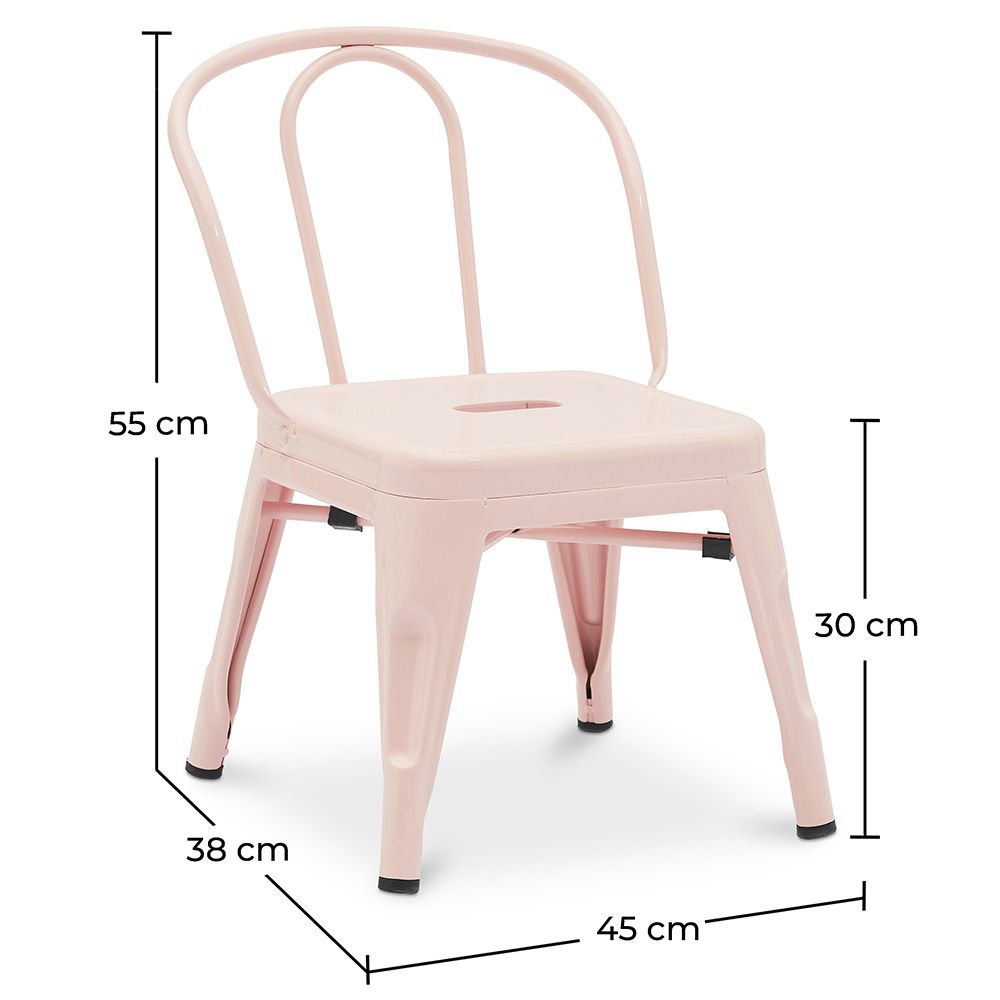 This is a Bistrot Metalix style inspired stool for kids. A fun metal colored chair, with a glossy finish. Children will love using this safe, solid and comfortable chair for many activities. Suitable for interior and exterior use.