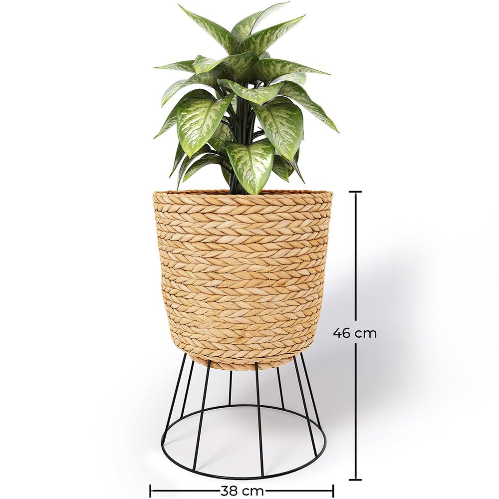 Discover natural harmony with this round floor planter, crafted with a natural water hyacinth weave and highlighted by a black metal structure, all at a height of 46 cm. The water hyacinth, skillfully interwoven around the planter, adds a warm texture and a cozy feel, while the black metal structure ensures durability and a modern touch. Standing at 46 cm in height, this planter becomes the perfect canvas to enhance the beauty of your plants, providing a fusion of natural and contemporary style that elevates the aesthetics of any space.