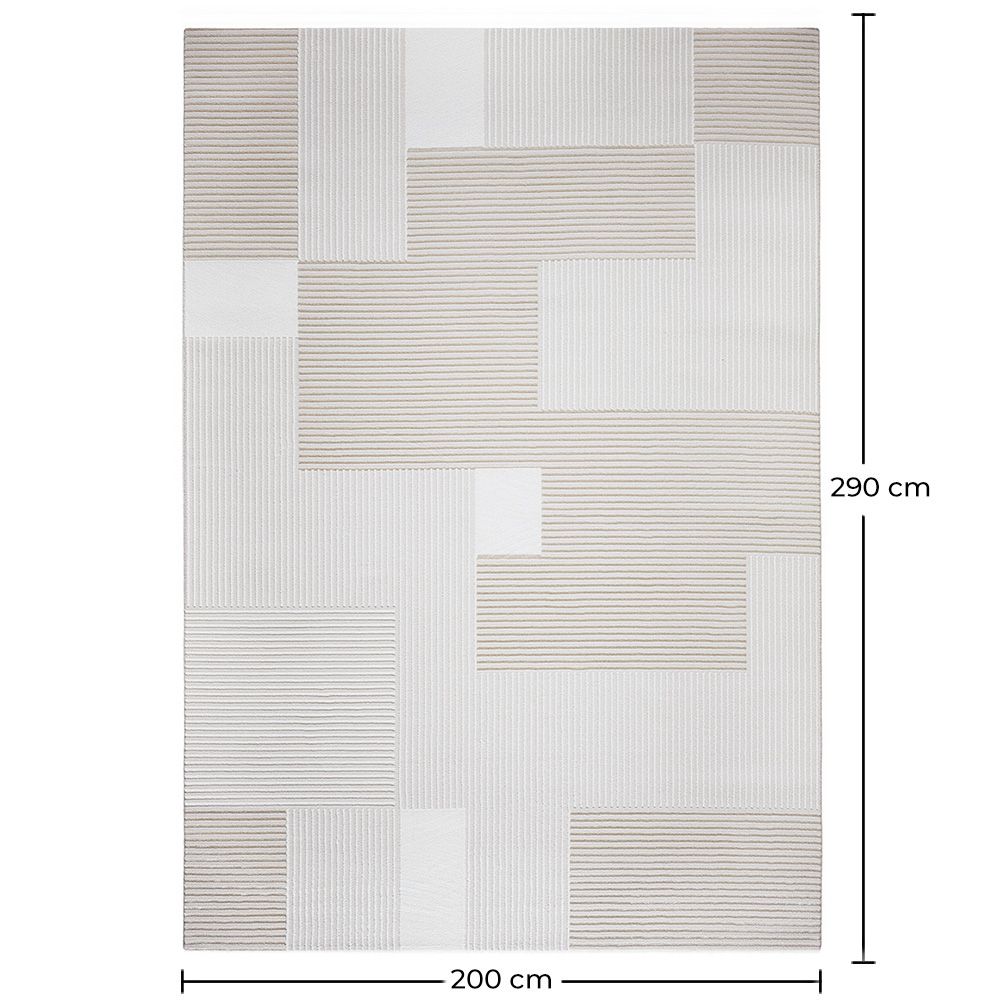 This stunning rug with neutral colors and minimalist design is the perfect piece to complete your home decor. With a generous size of 200 by 290 centimeters, this rug provides a soft and cozy base for any room. Its minimalist design, with clean lines and neutral colors, will complement a variety of decorating styles, from modern to Scandinavian or contemporary. Made with high-quality materials, this rug is resistant and durable, perfect for withstanding the test of time in high-traffic areas. Additionally, its easy maintenance makes it a practical choice for any home. Add a touch of style and comfort to your space with this beautiful minimalist rug.